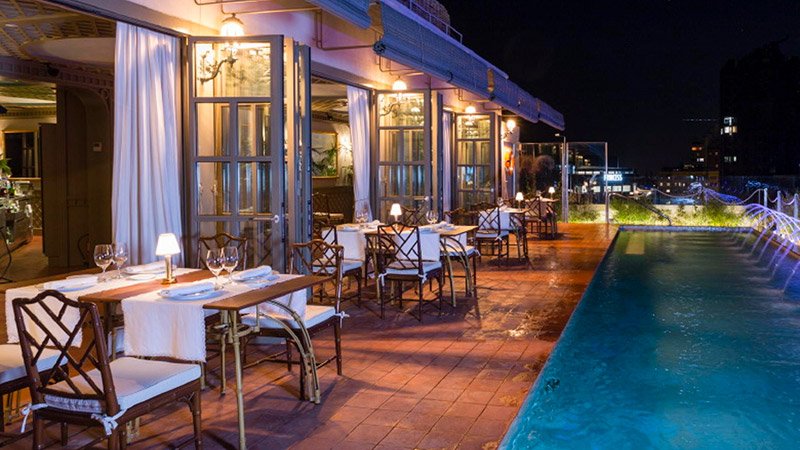 5. Cena romántica en Rooftop Garden, la privilegiada terraza del Hotel Palace en Barcelona.
