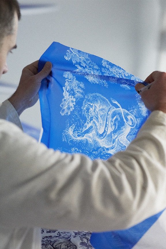 Sirve como el homenaje a la libertad y la aventura de la directora creativa Maria Grazia Chiuri, con expertos artesanos que pasan por un tedioso proceso de dar forma y alisar correctamente la tabla antes de colocarle un tejido especial cubierto con el emblemático estampado azul fluorescente Toile de Jouy de DIOR en un lado y el clásico Logotipo “ CHRISTIAN DIOR ” en el otro.