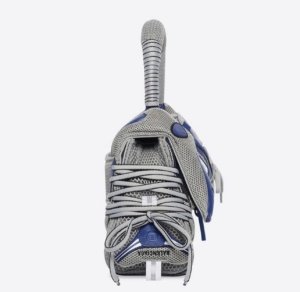 Llamado ‘Sneakerhead‘, el bolso presenta inserciones de malla y piel sintética que reproducen la apariencia de las zapatillas. También incluye cordones (en forma de cintas que adornan sus laterales) junto con un bolsillo trasero y el logo de Balenciaga al revés bordado en el lateral.