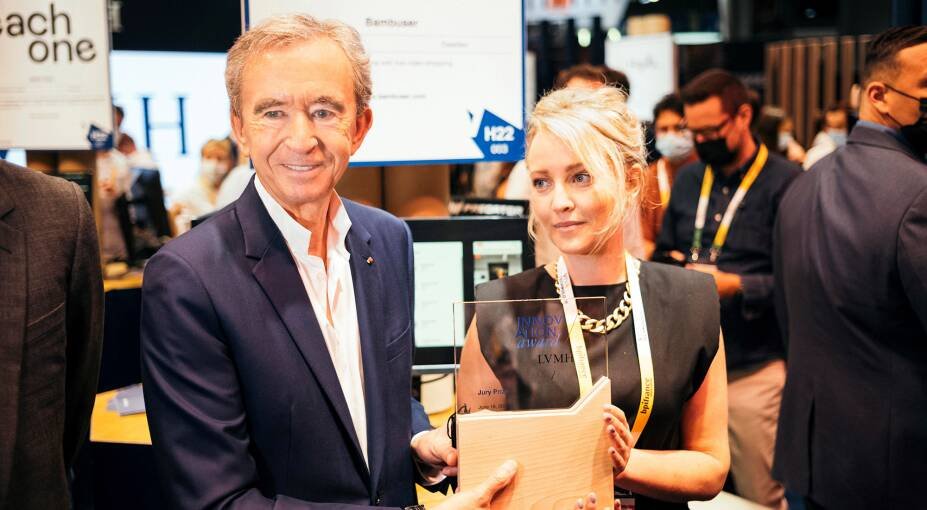 En la quinta edición de los LVMH Innovation Award, 28 startups preseleccionadas para la ronda final presentaron su visión de la experiencia del cliente del mañana a los profesionales de la industria y al público durante Viva Technology. Seis startups recibieron premios en las diferentes categorías: datos e inteligencia artificial, experiencia del empleado, reconocimiento de marca y medios, experiencia omnicanal y minorista, excelencia en operaciones y fabricación y sostenibilidad. Bambuser, una startup especializada en Live Stream Shopping, fue elegida como ganadora general por Bernard Arnault, presidente y director ejecutivo, Toni Belloni, director general del grupo LVMH y los miembros del comité de selección.