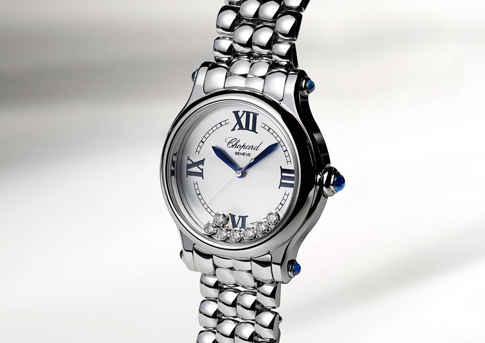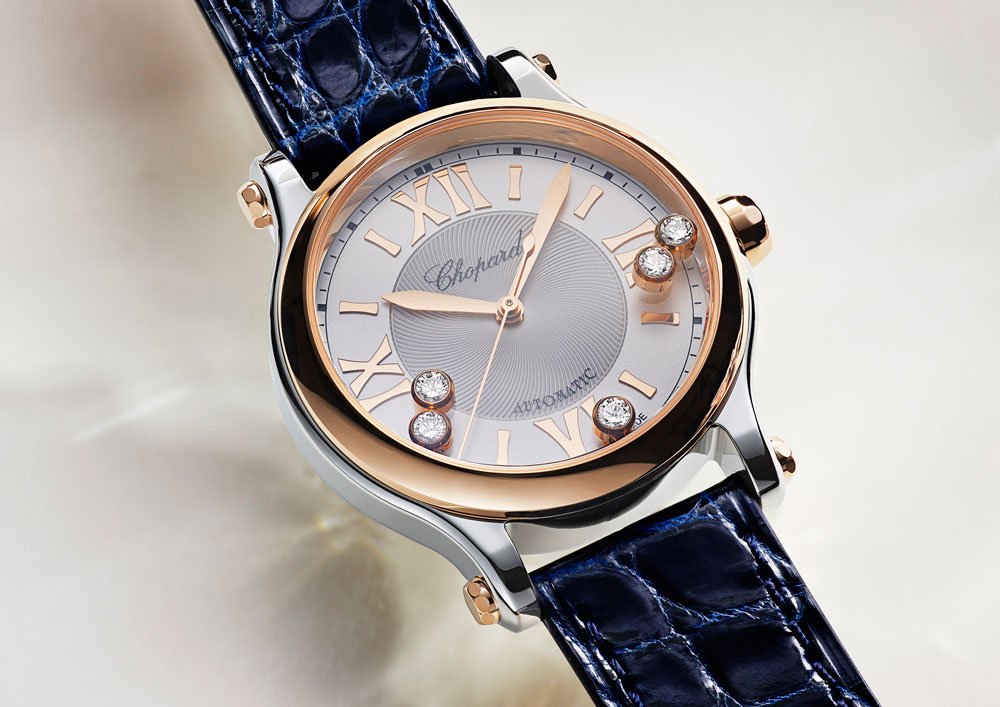 El reloj Happy Sport se reinventa por primera vez en una caja comodísima de llevar de 33 mm de diámetro, una proporción inspirada en las reglas de la armonía del número áureo. Ocho referencias inéditas forman la colección en una rica variedad de versiones: cuatro modelos en dos materiales, entre los que se encuentra uno cuya caja es de Lucent Steel A223 y oro ético rosa de 18 quilates, y tres completamente fabricados en oro ético rosa de 18 quilates, disponibles con correa de cuero o de metal. Una última versión de oro ético blanco de 18 quilates está completamente engastada de diamantes. Todos laten al ritmo del movimiento automático de manufactura Chopard 09.01-C, y en su esfera bailan los míticos diamantes móviles.