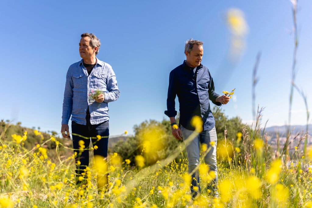 Cada mañana, los Hermanos Torres recogen una variedad de flores para aderezar los platos que sirven en sus restaurantes. Este paseo, que a veces realizan en bicicleta, también les sirve para inspirarse y dotar a sus platos de ingredientes sostenibles recolectados a muy poca distancia del restaurante.