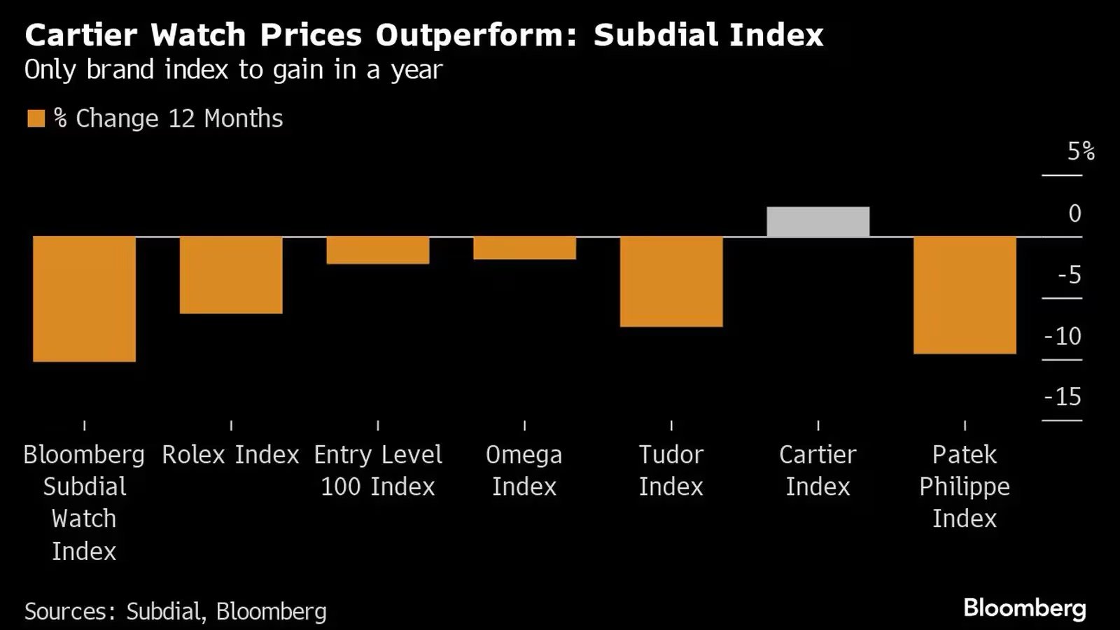 Durante el mismo año, los relojes de la joyería francesa, propiedad de la firma suiza Richemont, tuvieron un mejor comportamiento que la caída del 10,2% registrada por el Bloomberg Subdial Watch Index.