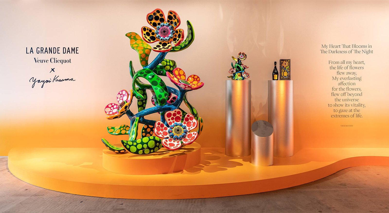 Basada en una larga tradición de innovación y creatividad, la Maison ha establecido un diálogo entre su legado y la visión decididamente contemporánea de Camille Morineau y Constance Guisset. Concebido como una experiencia y atractivo para todos los sentidos, este viaje a dos siglos y medio de “Cultura Clicquot” celebra la creatividad, el optimismo y la audacia, llegando al presente con sorprendentes obras de arte contemporáneas encargadas especialmente para la exposición. .