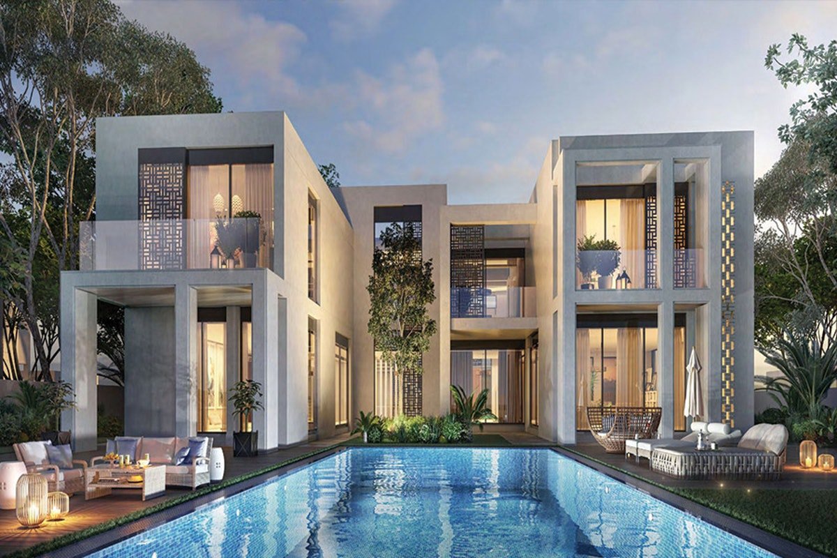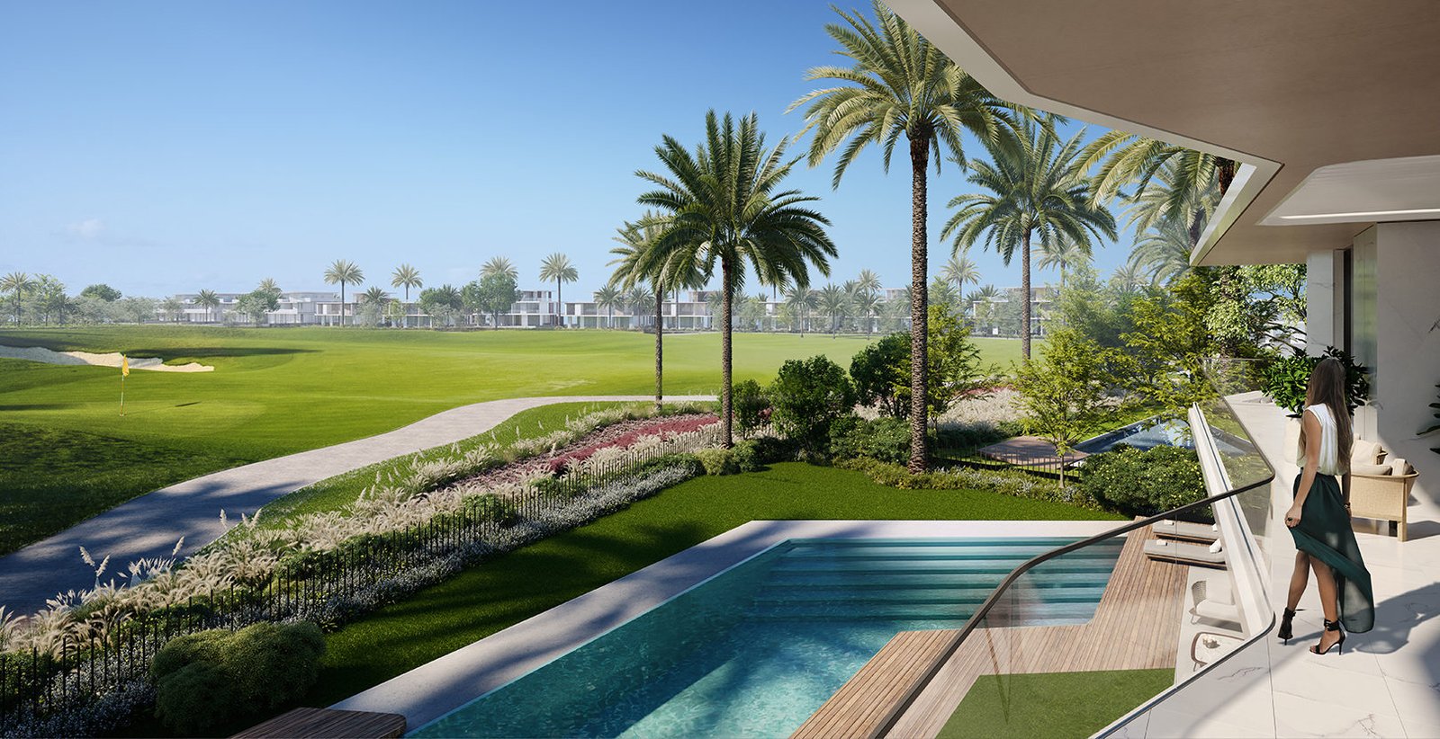 Todas las villas tienen vistas a un campo de golf privado de 18 hoyos con par 72 y al horizonte del Burj Khalifa desde sus azoteas privadas.