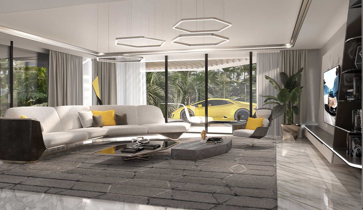 Son casas individuales en varios niveles dentro de un área residencial privada, cada una con jardines, piscinas privadas y varios espacios de estacionamiento. La arquitectura se completa con interiores inspirados en el diseño Lamborghini.